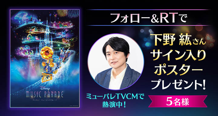 『ディズニー ミュージックパレード』公式Twitterアカウント(@musicparade_jp)をフォローし、対象のキャンペーンツイートをリツイートした方の中から抽選でプレゼントされます☆