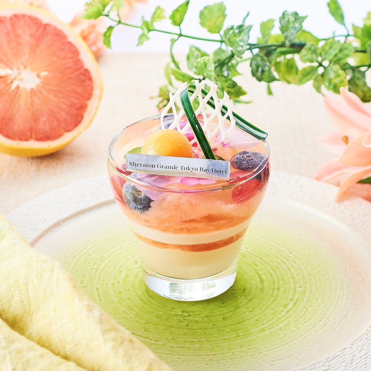 グレープフルーツの酸味と、ライチの甘さが絶妙な、さっぱり系のグラスデザートです。