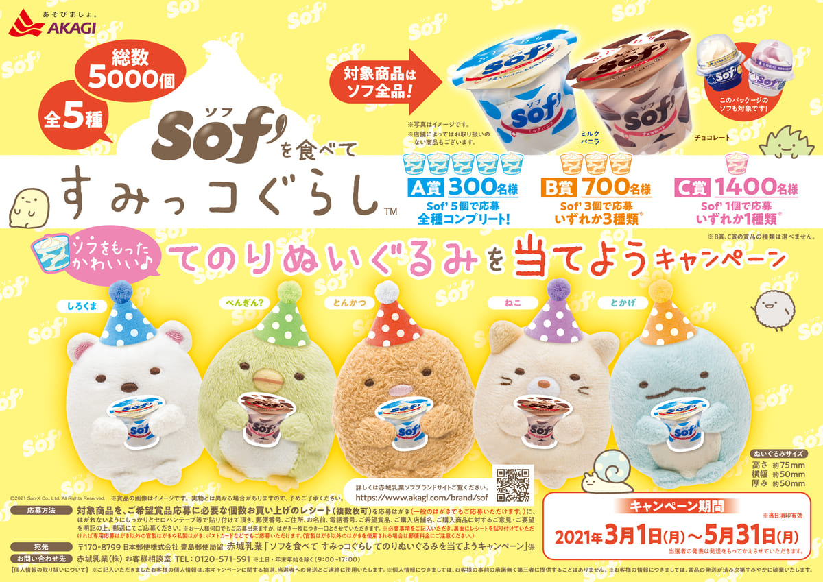 赤城乳業「Sof’(ソフ)を食べてすみっコぐらしぬいぐるみを当てようキャンペーン」
