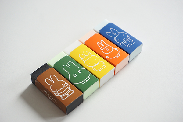 スリーブの色はブルーナカラーから、茶・緑・黄色・オレンジ・青の展開、それぞれミッフィーやふがこちゃん(グランティ)が描かれています。