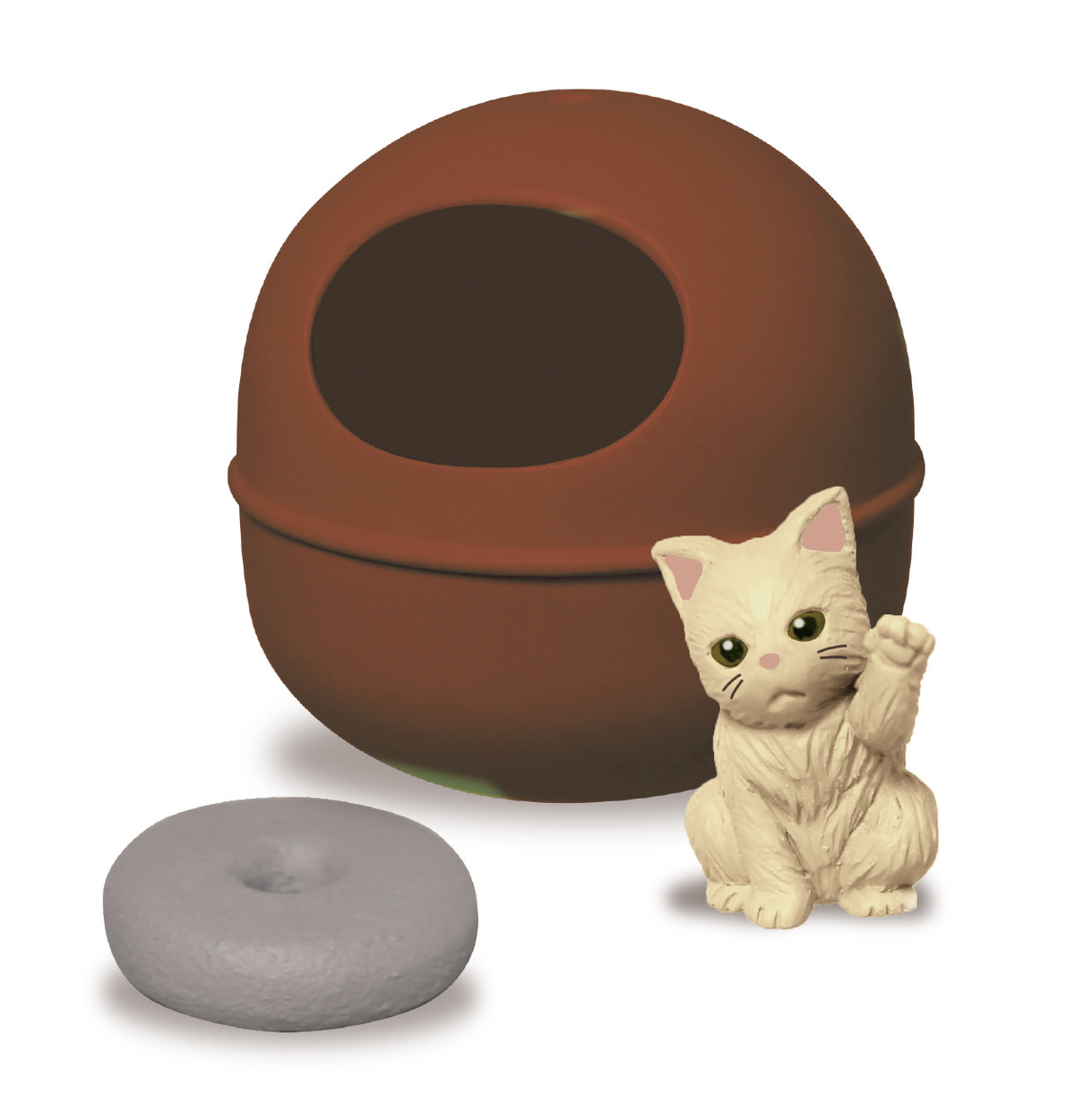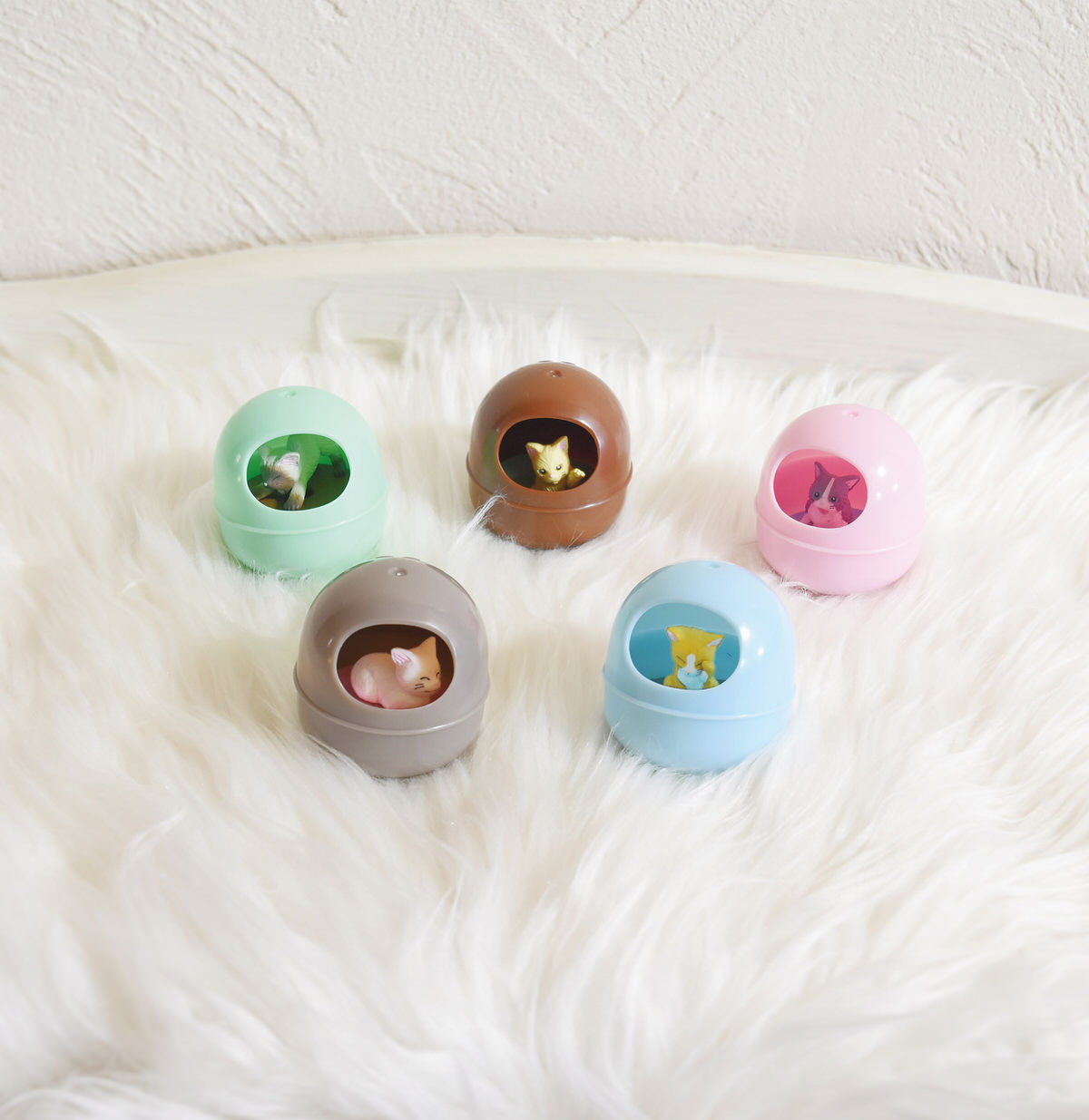 そのままねこのお部屋になるカプセルの中に、かわいいねこのフィギュアが入った、癒し系カプセルトイです☆