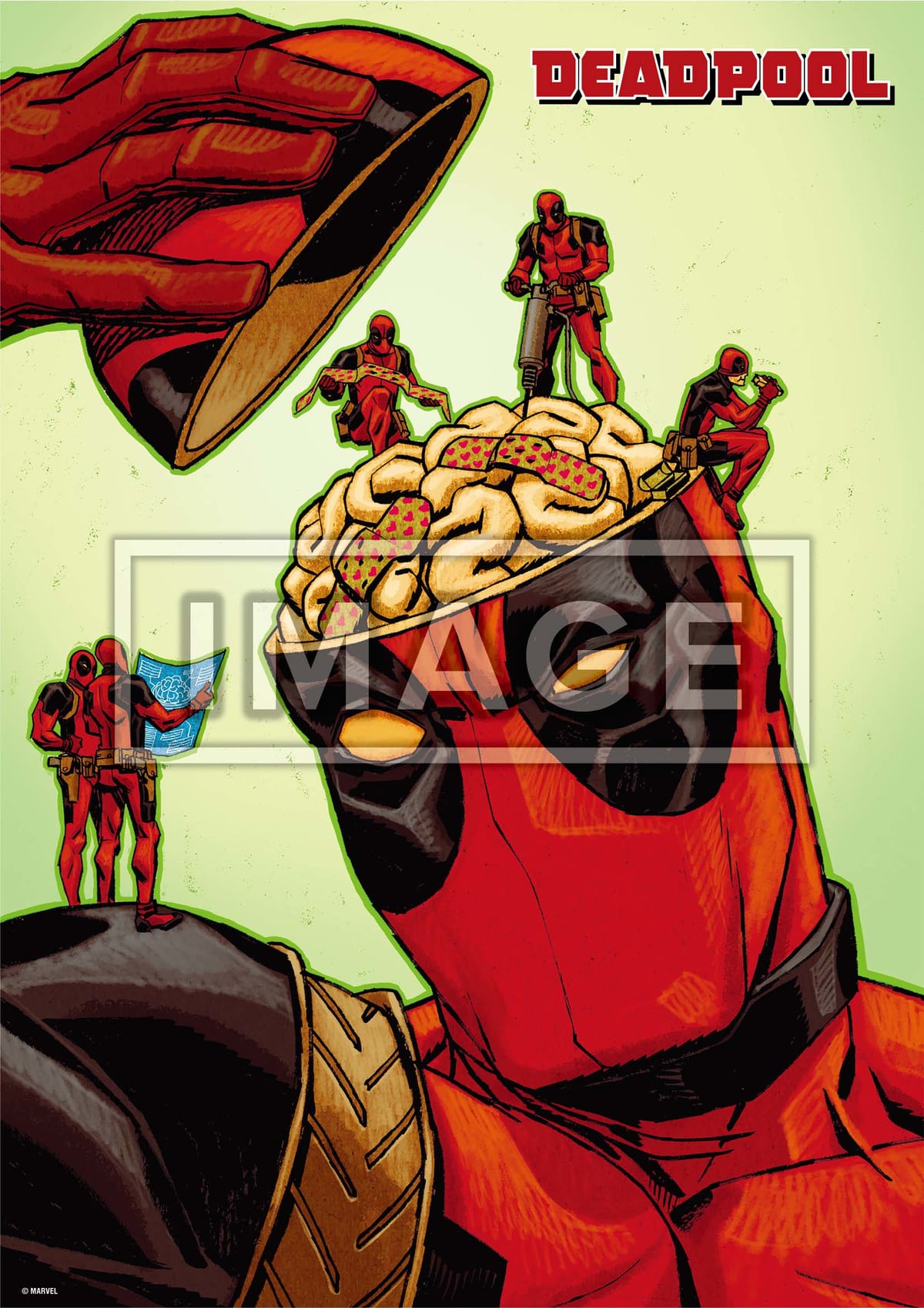 頭の中を修理する小さな「デッドプール」たちが描かれた一枚