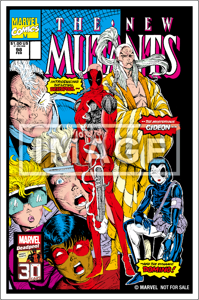 ステッカーのラインナップは、1991年に発行された「デッドプール」のデビュー作品「ニューミュータンツ」の98号アートや