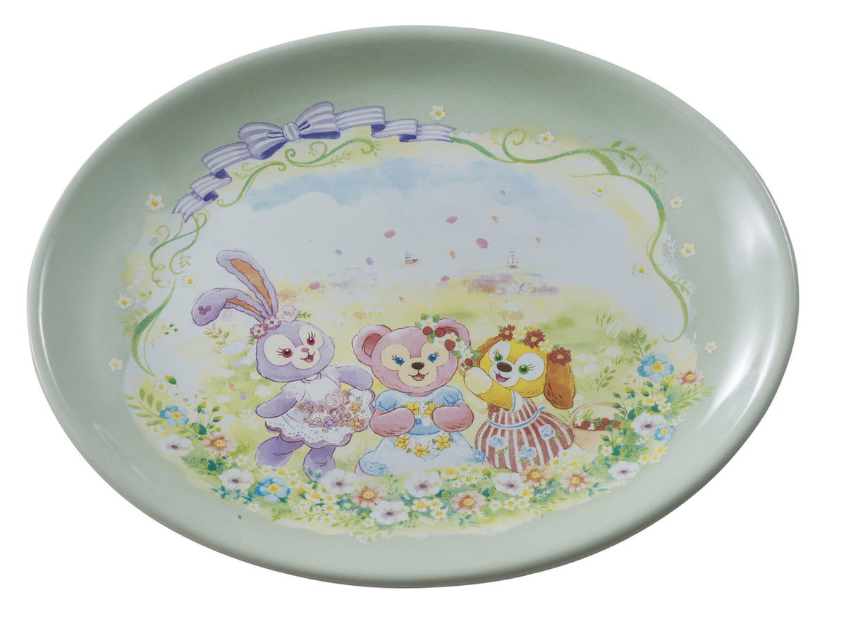 スーベニアプレートには、シェリーメイとステラ・ルーとクッキー・アンが、仲良くお花畑で春を楽しむ様子がデザインされています。