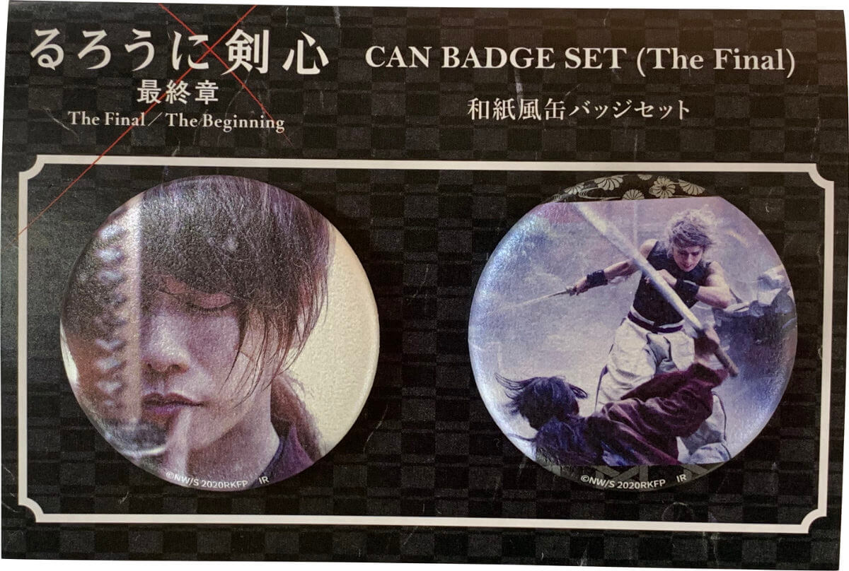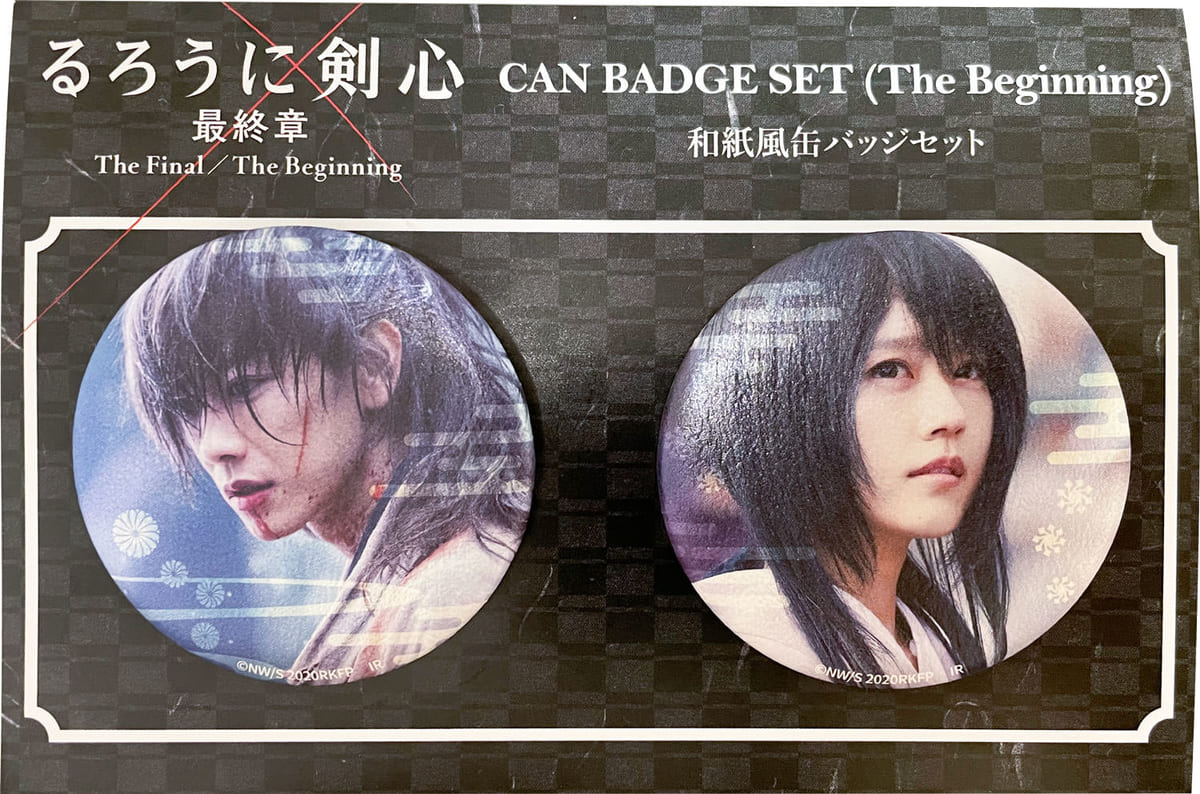 「緋村抜刀斎」と「雪代巴」をデザインした「和紙風缶バッジセット」は、2個セットでラインナップ。