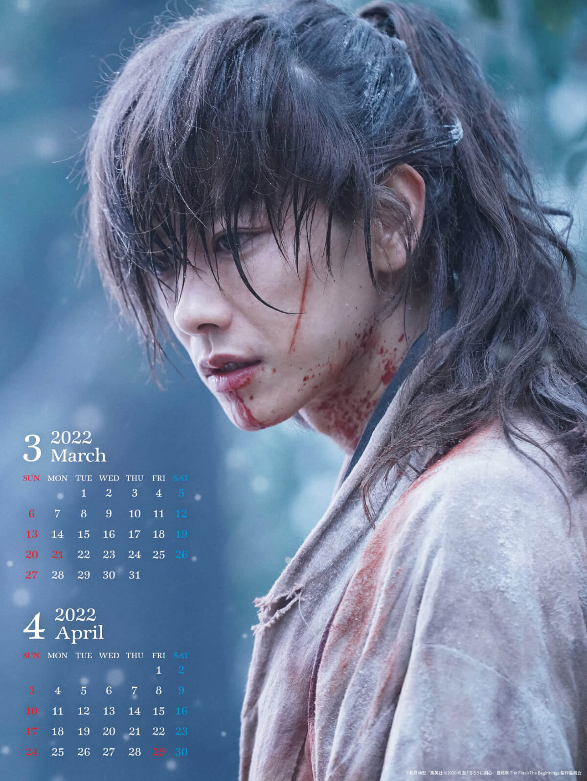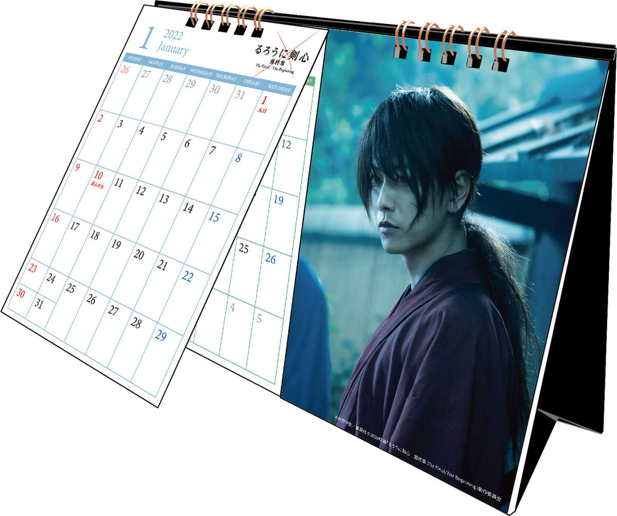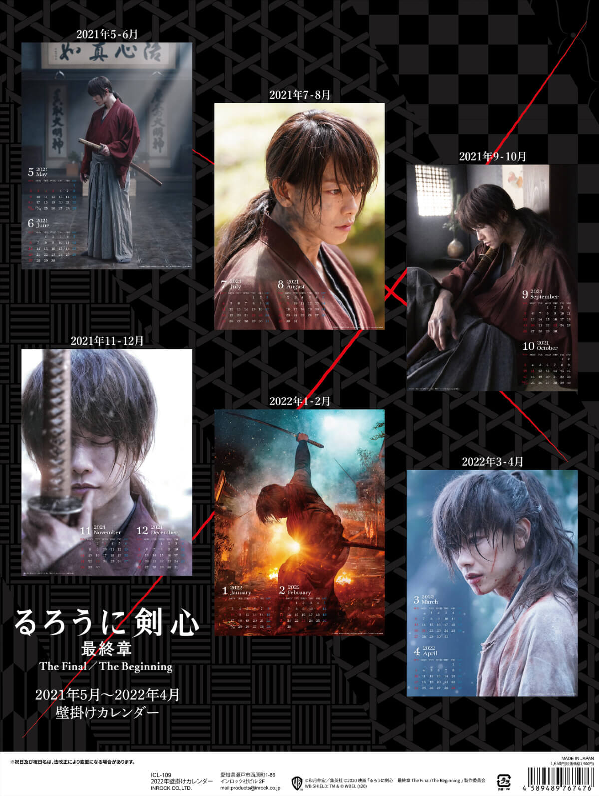 裏表紙のバックに和柄文様が総柄でプリントされた『るろうに剣心 最終章』の世界観が存分に堪能できるカレンダーです!
