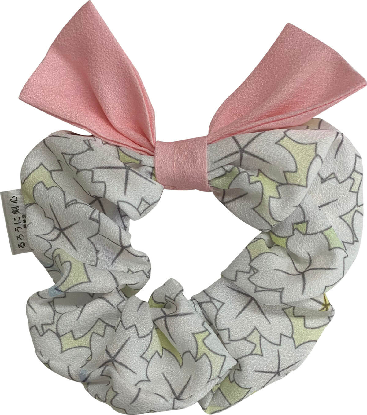 フェミニンな淡藤色をベースにした「雪代巴」モチーフの「シュシュ」