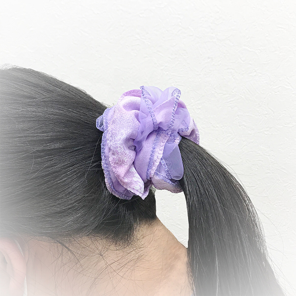 透け感のある薄紫色の生地を重ねた、大人可愛いシュシュです☆