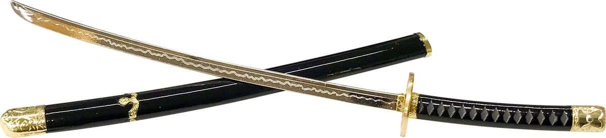 刀装の頭や鍔、鞘の鐺部分などにゴールドの装飾が施されているこだわりの造形にも注目です!