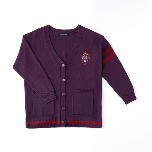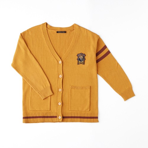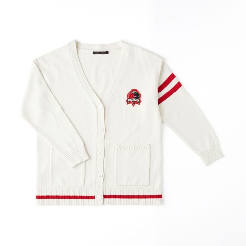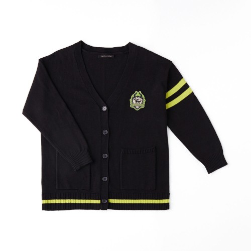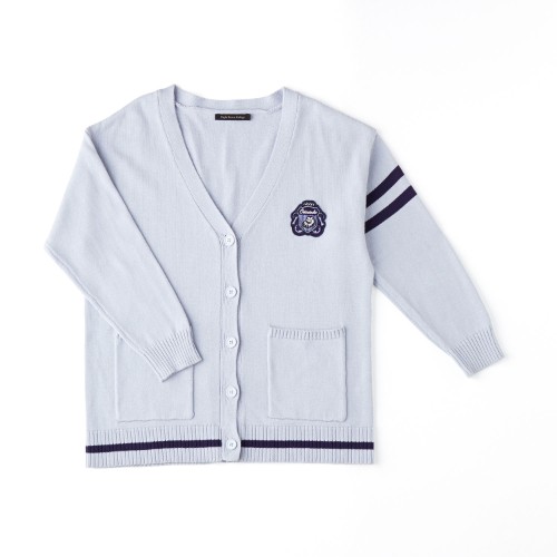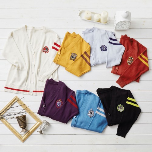 胸元の刺繍ワッペンで寮章が表現されたカーディガンの袖と裾のラインには、寮のイメージカラーが使用されています。