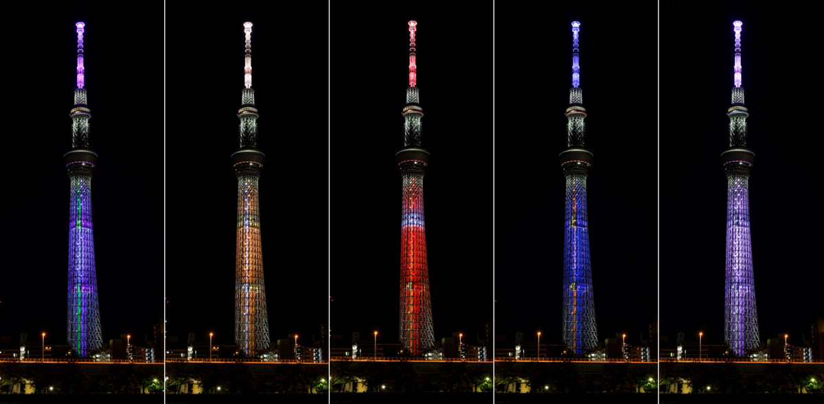 注目は、スカイツリーに点灯される全5種類の特別ライティングです。