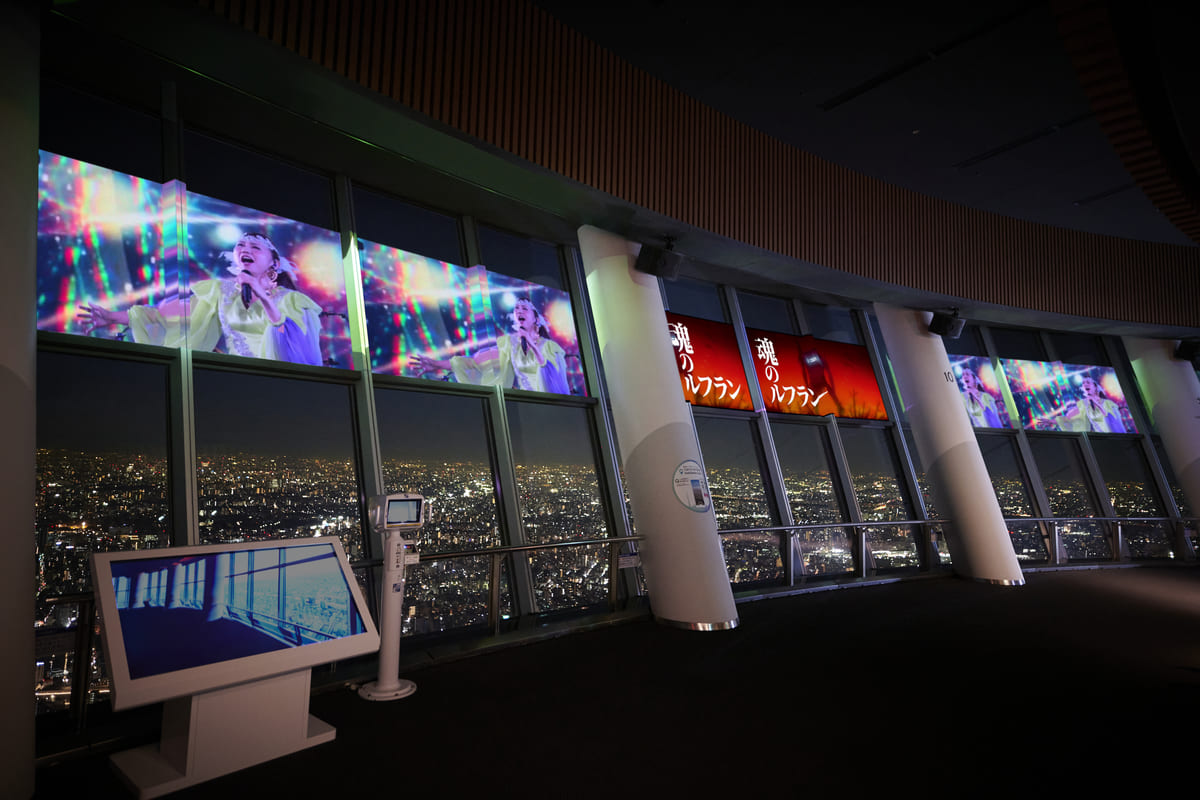 また、夜間の天望デッキ フロア350においては、窓ガラスを巨大スクリーンに仕立てた「SKYTREE ROUND THEATER(R)」オリジナル映像コンテンツに「魂のルフラン」が追加上映されます。