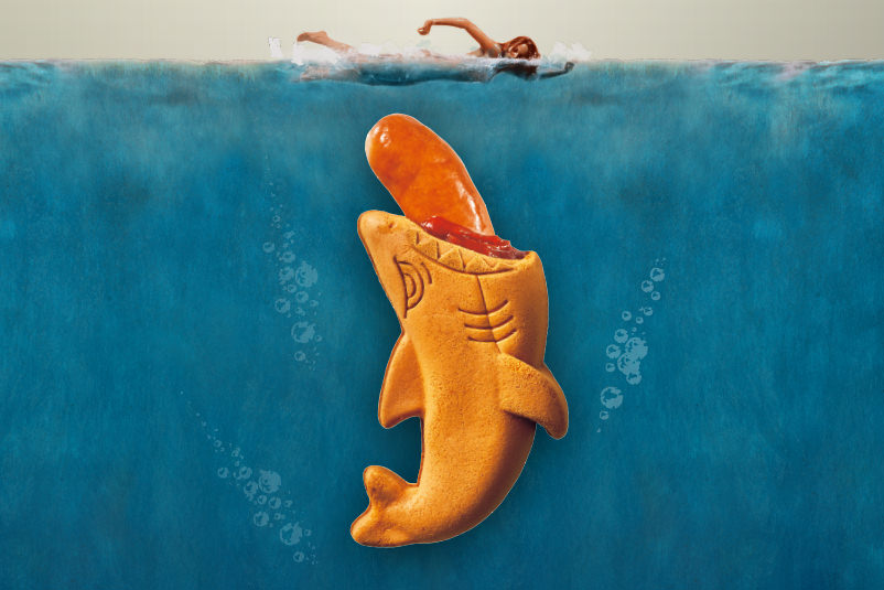 ジョーズらしい、美女を狙うあのアートをおもしろおかしく再現!