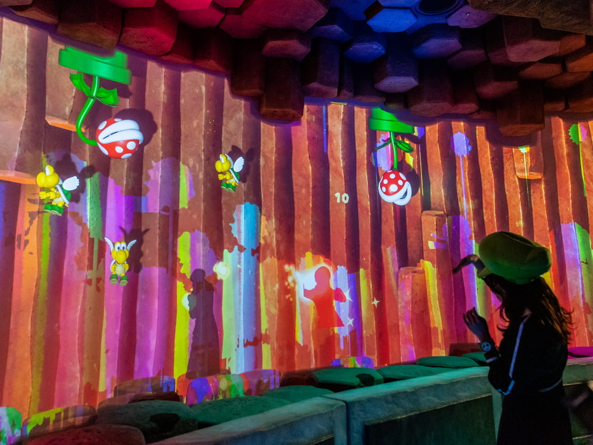 ハテナブロックを叩いたり、音符ブロックで遊ぶなどの体験をすると、実際にコインを集めることができます☆