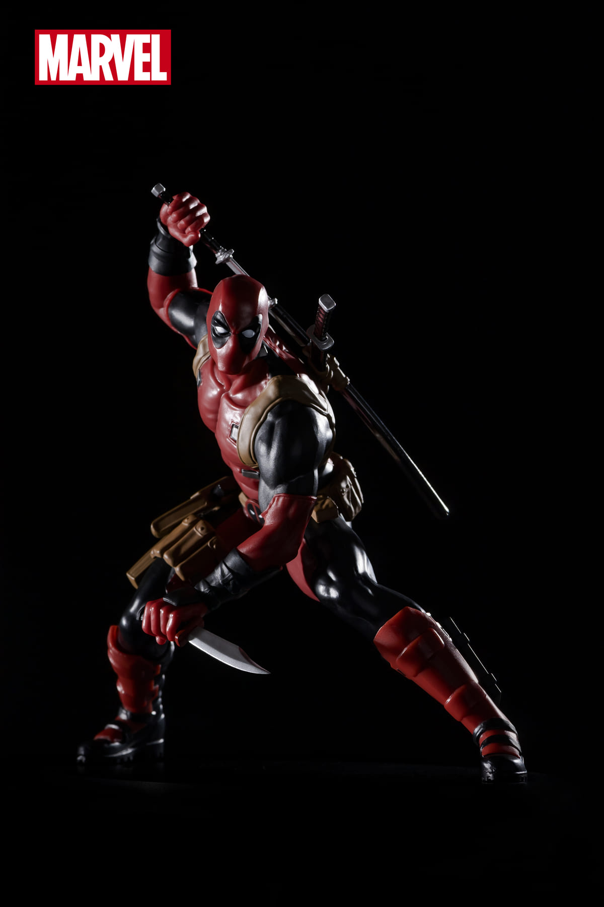 「デッドプール」の赤と黒のスーツはもちろん、ブーツやベルト、装備品が細かく再現された緻密なフィギュアです。