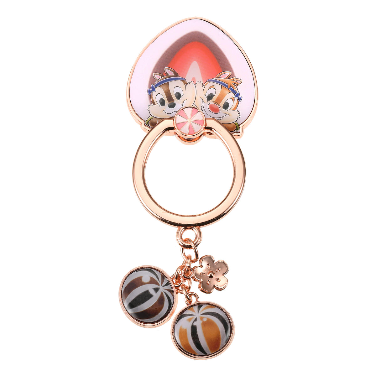 「チップ」と「デール」をいちご大福モチーフのプレートにレイアウトした「スマートフォンリング」