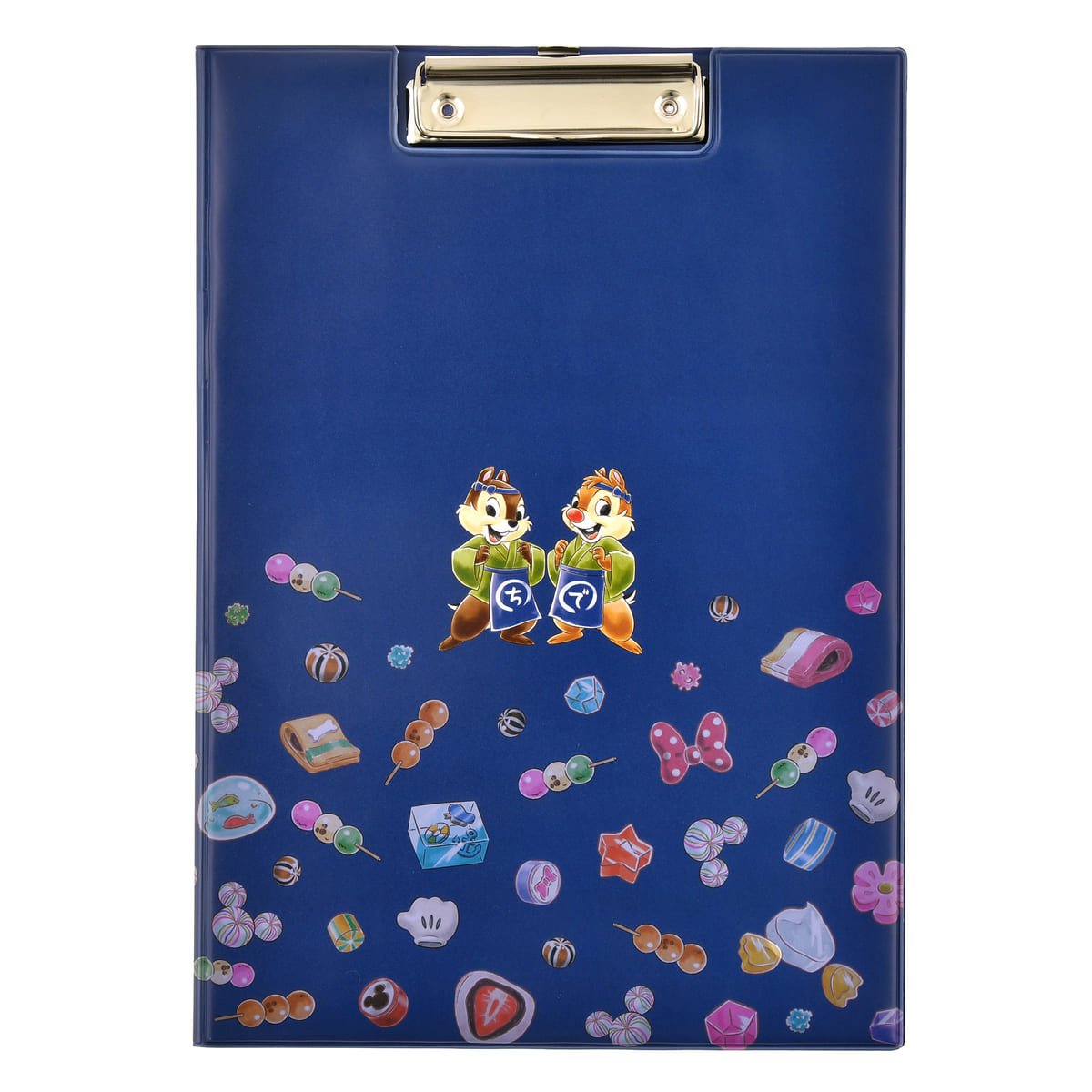 落ちついた藍色で「チップ」と「デール」がプリントされた、和を感じられるデザインです。