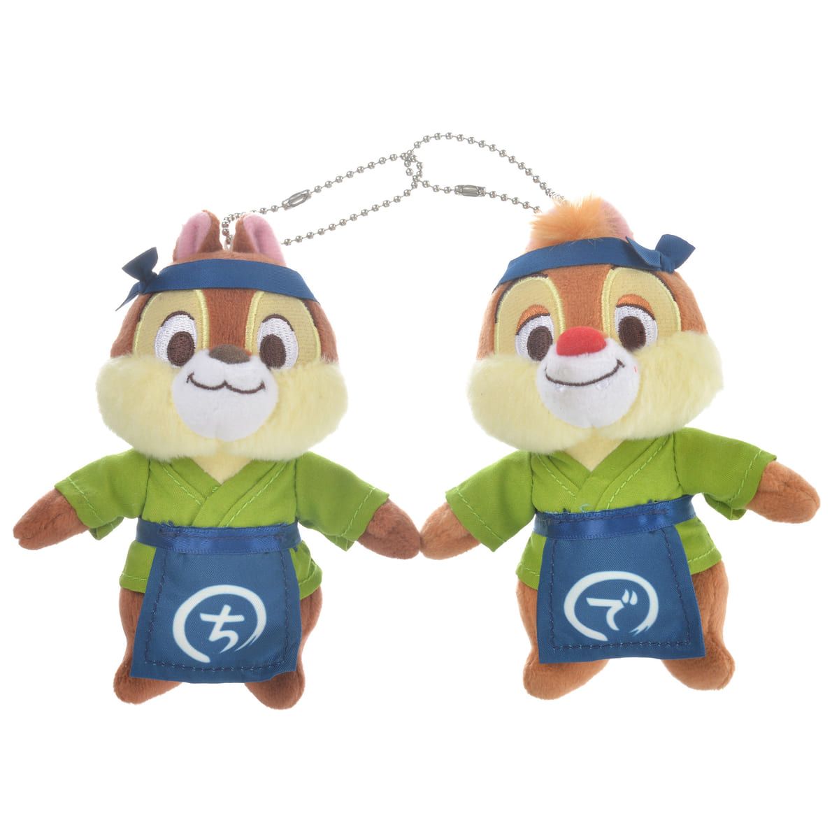 うぐいす色の着物に「ち」と「で」の印入り前掛け、鉢巻きを締めた「チップ」と「デール」がセットになっています。