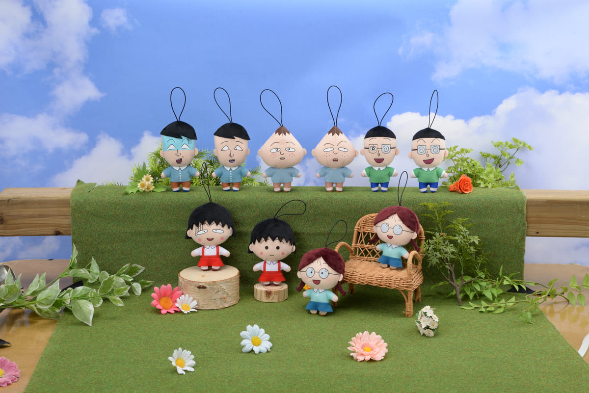 「まる子」とそのクラスメイトたちのいろんな表情のマスコット。