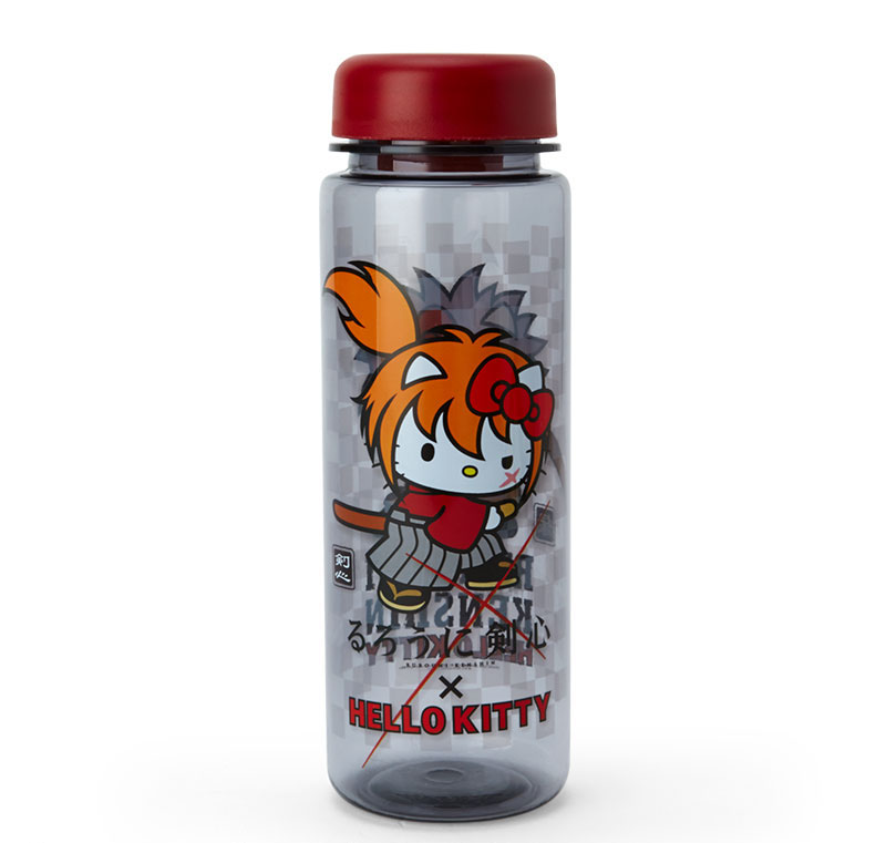 「剣心」と「縁」に扮した「ハローキティ」のイラストがあしらわれたクリアボトル。
