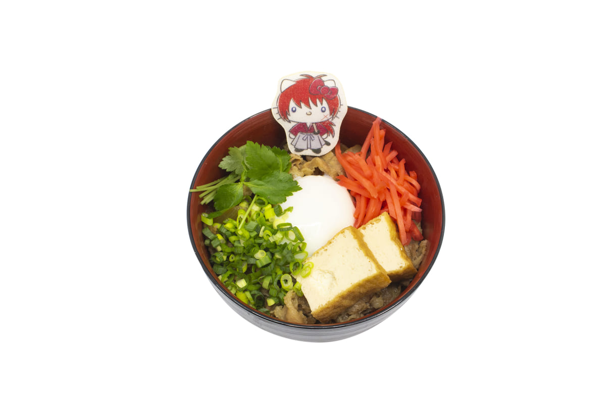 「剣心」に扮した「ハローキティ」の【牛鍋丼】
