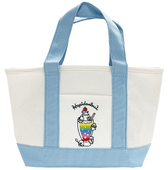 ポケットには、カラフルなレインボーカラーのクリームソーダと「はぴだんぶい」のメンバーが描かれています☆