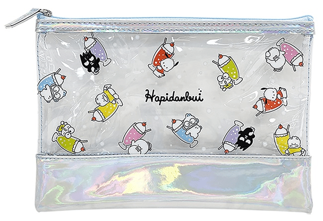 「はぴだんぶい」のキャラクターたちが、色とりどりのクリームソーダといっしょにデザインされた、とってもキュートなポーチです☆