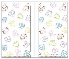 開くと「はぴだんぶい」のキャラクターたちのお顔の総柄模様です☆