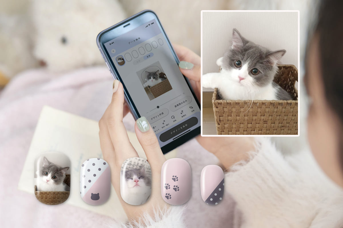 専用スマートフォンアプリとも連動しているので、お気に入りの写真やイラストをネイルチップに印刷することもできます。