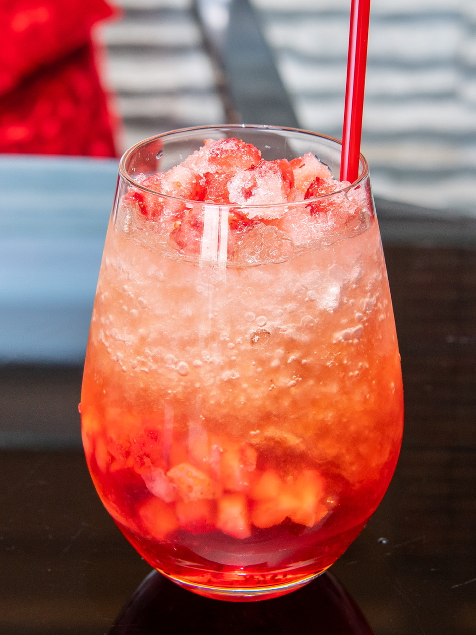 ダイスカットの苺がたっぷり乗ったカクテル。