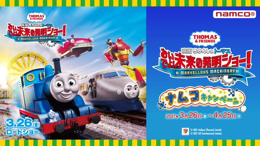 namcoの『映画 きかんしゃトーマス おいでよ!未来の発明ショー!』公開記念キャンペーンは、2021年3月26日(金)から4月25日(日)までの開催です。