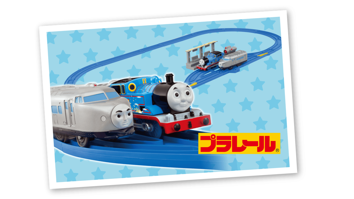 動力付きの「トーマス」と、プルバックで走行する「ケンジ」がセットになったプラレールです。