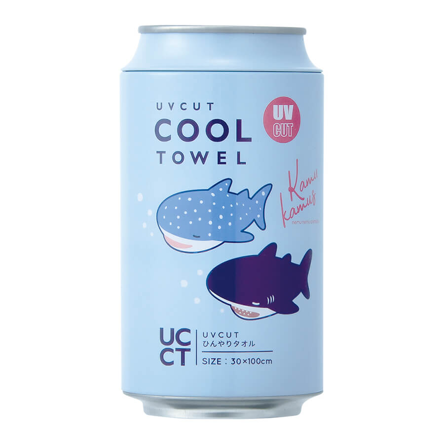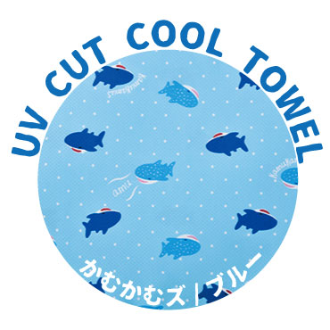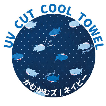 人気キャラクターシリーズ「かむかむズ」より、ジンベエザメの「じんべえさん」とサメの「ザップ」がパターンになった「UVカットクールタオル タオル」がラインナップ。