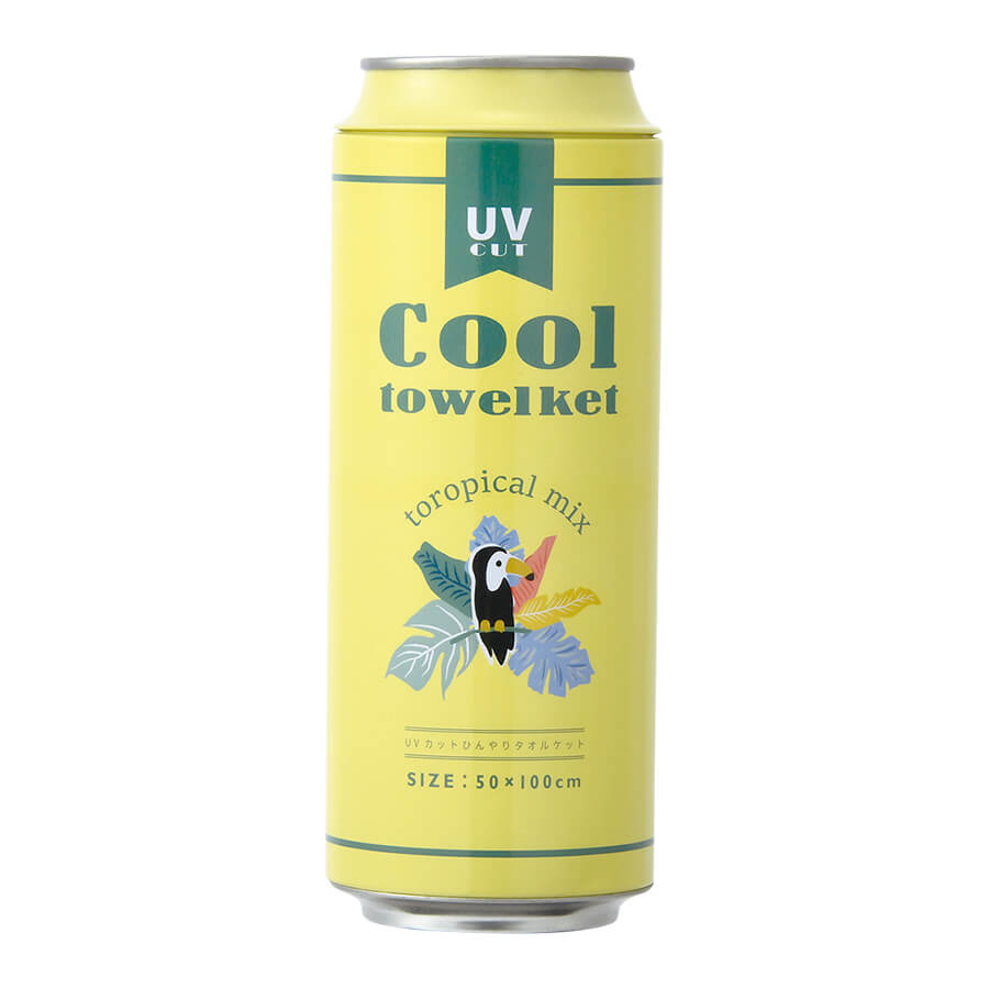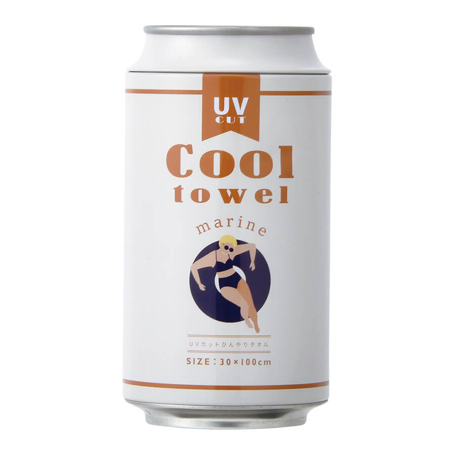 スチール缶のパッケージが可愛い「UVカットクールタオル」シリーズ。