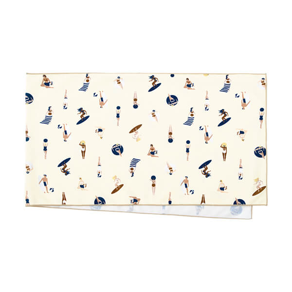 水着を着た男女をどこかレトロなタッチで描いた総柄デザインです。