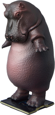 人間味あるポーズで体重を測る、動物たちのフィギュア。