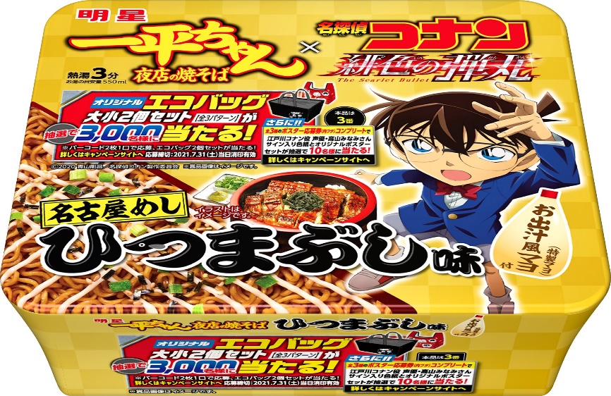 名古屋のご当地グルメ「ひつまぶし」をイメージした「明星 一平ちゃん夜店の焼そば 名探偵コナン ひつまぶし味」が、全国で発売されます☆