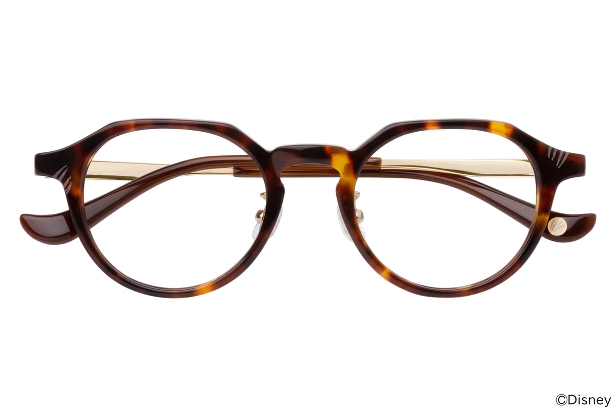 太めのべっこう風フレームとゴールドのコンビネーションが重厚感を演出する「サバナクロー寮」モデル。