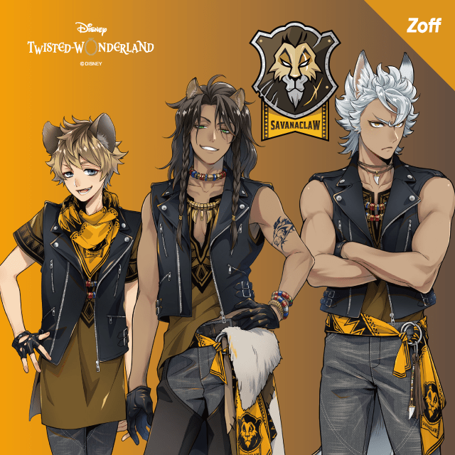 クールにポーズをとる「サバナクロー寮」の3寮生が描かれたアイウェアもポイントです!