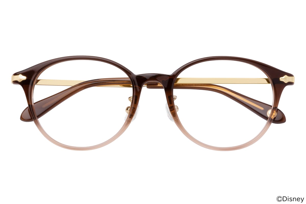 糸車のモチーフを立体的に表現したテンプル(つる)から、いばらが絡まるデザインに仕上げられています。