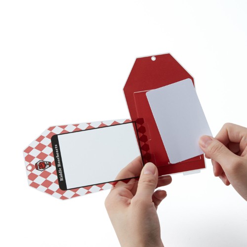 スライド部分に描かれたエキゾチックなアートが、カードやチェキを華やかに彩ります。