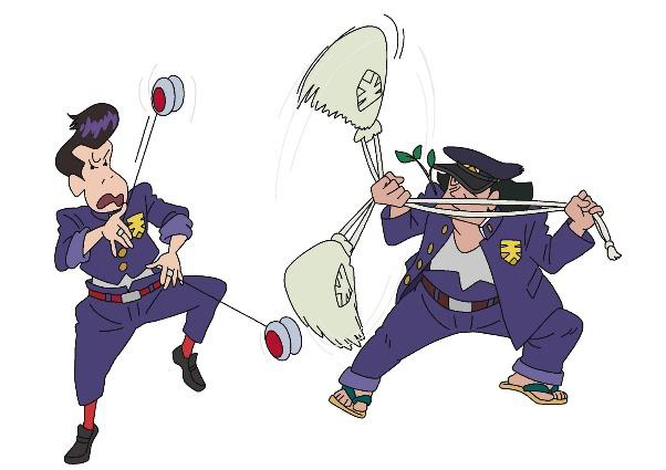 しんのすけたちに絡んでくるカス組の不良、給食袋とヨーヨー。