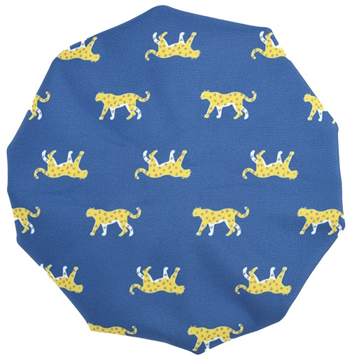 本体は、鮮やかなブルー地に「ヒョウ」をプリントしたパターン柄。