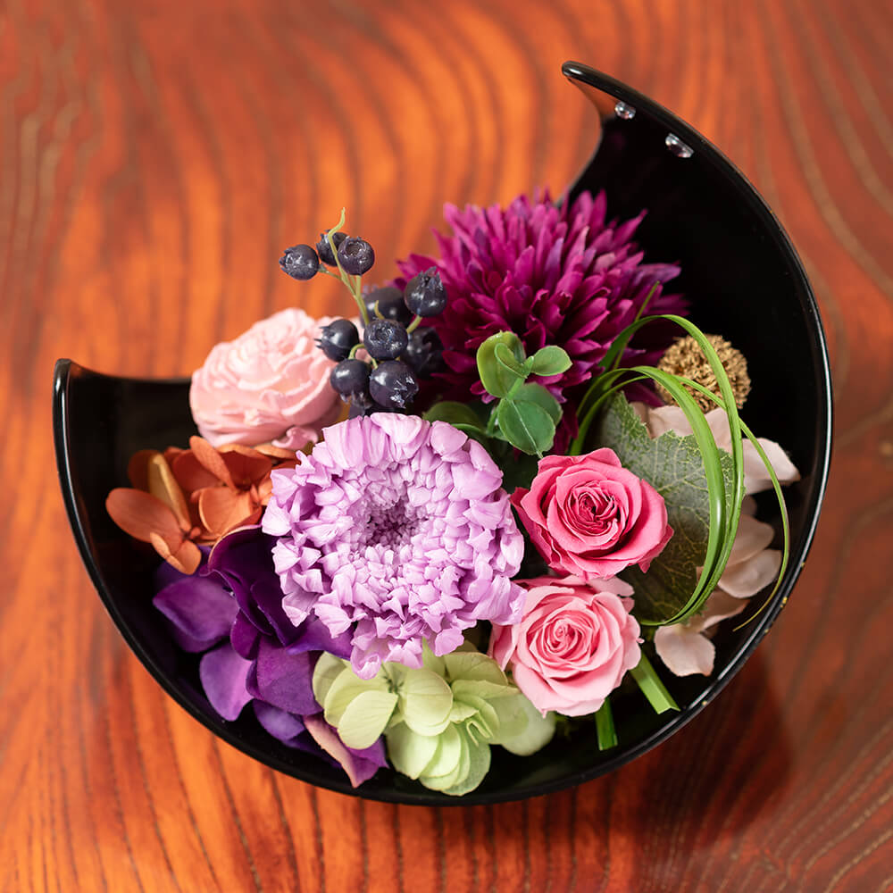 落ち着いた雰囲気が素敵な、華やかで上品なプリザーブドフラワー!