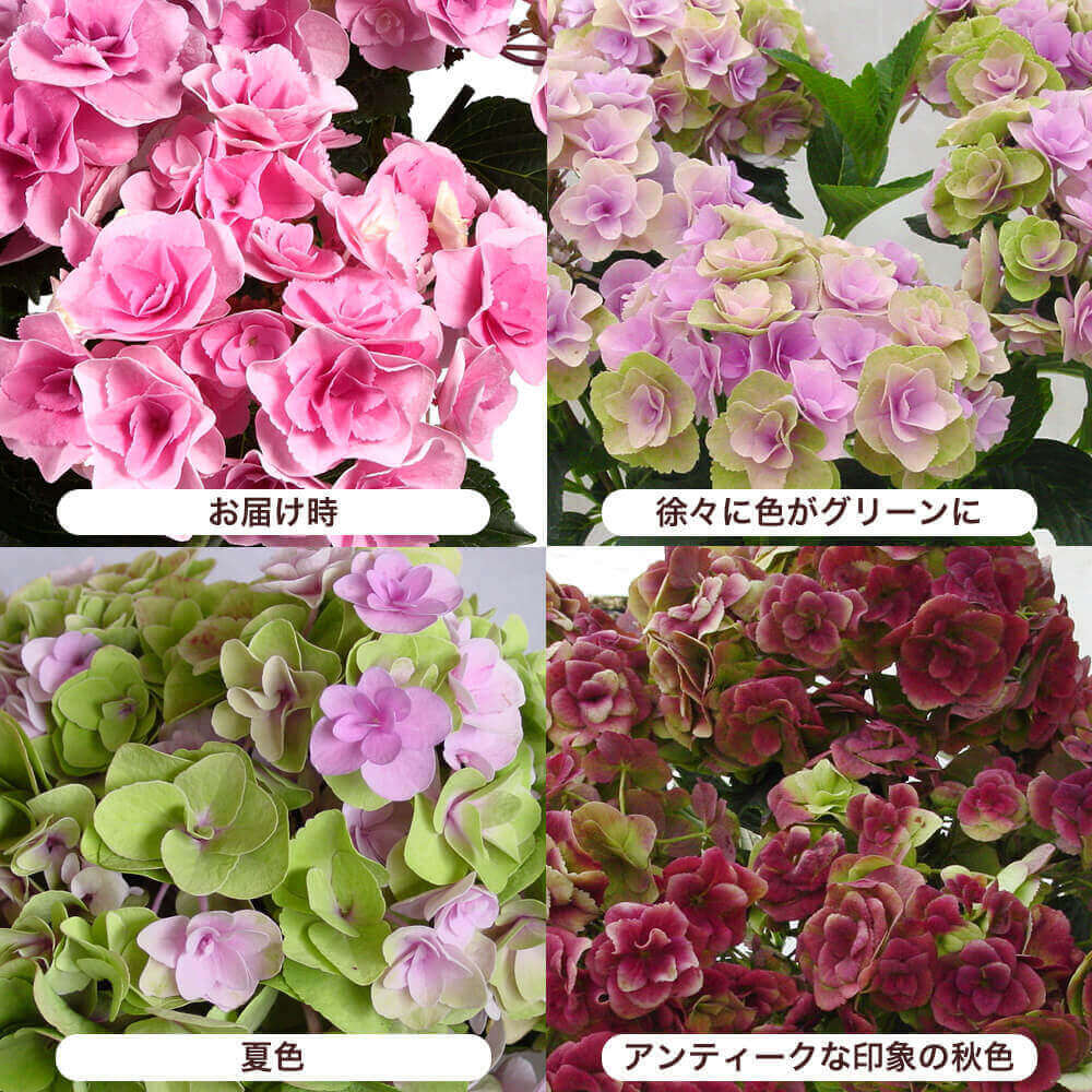 咲き進むと半手まり状になり、ピンクからグリーンへと色の変化も楽しめます☆