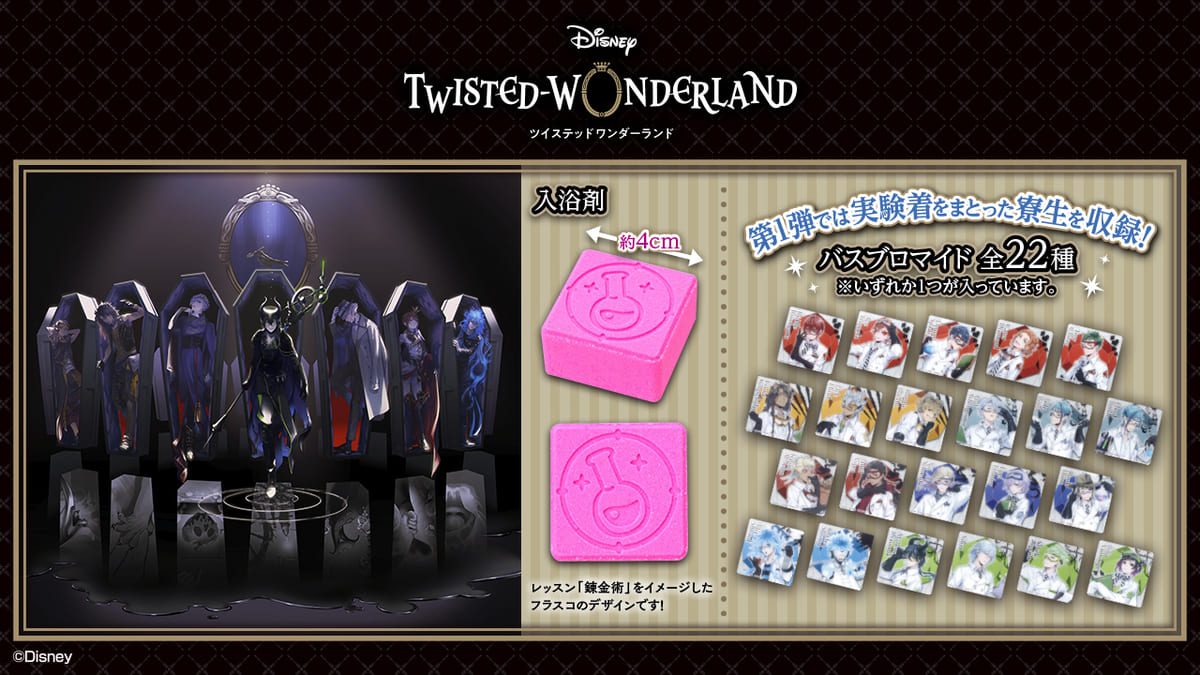 入浴剤には、スマートフォンゲーム『ディズニー ツイステッドワンダーランド』に登場するレッスンの「錬金術」をイメージした刻印入りです☆