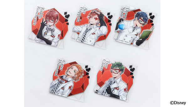 名門魔法士養成学校「ナイトレイブンカレッジ」の7寮から「ハーツラビュル寮」の「リドル・ローズハート」「エース・トラッポラ」「デュース・スペード」「トレイ・クローバー」「ケイト・ダイヤモンド」や