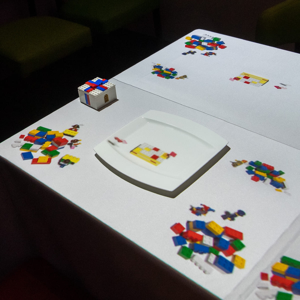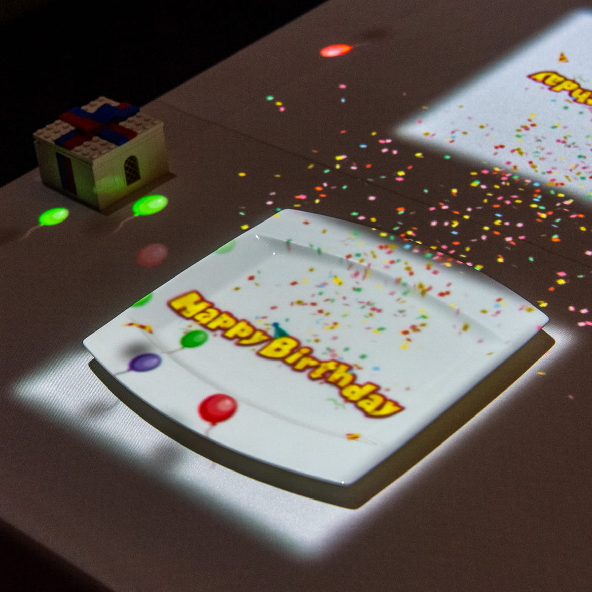 プロジェクションマッピングにより、お子様の前に置かれた真っ白なプレートにお祝いのメッセージが映し出されていきます!