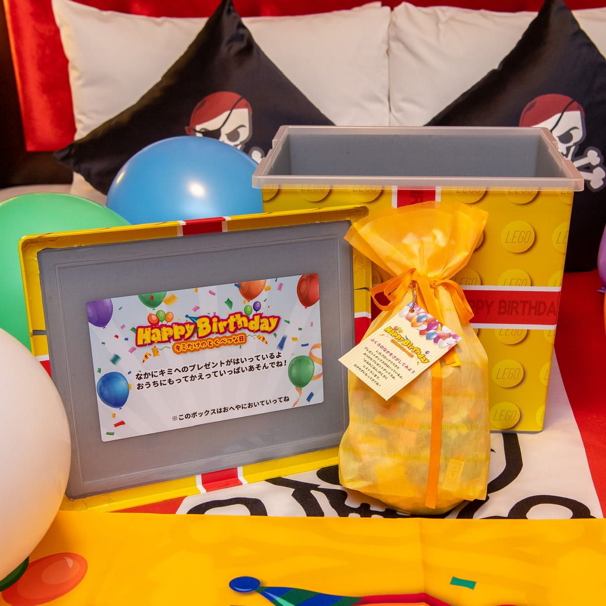 お誕生日ステッカーを貼って、サプライズいっぱいの特別なレゴランド・ジャパンでのお誕生日を過ごせるパッケージです。