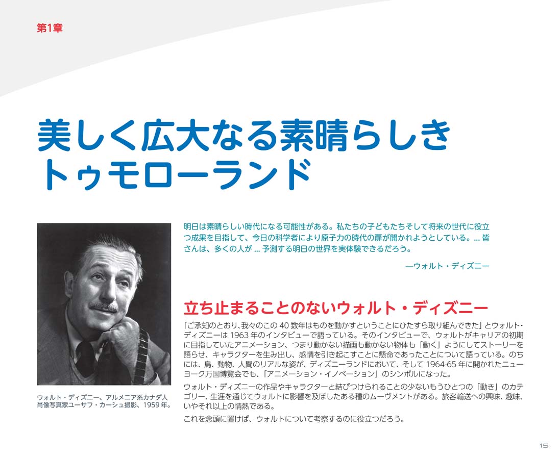 未来を見据え、明日の世界をより素晴らしいものとするために進み続けたウォルト・ディズニー氏。